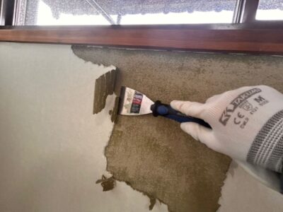 貼ってあった壁紙を丁寧に剥がしていきます。